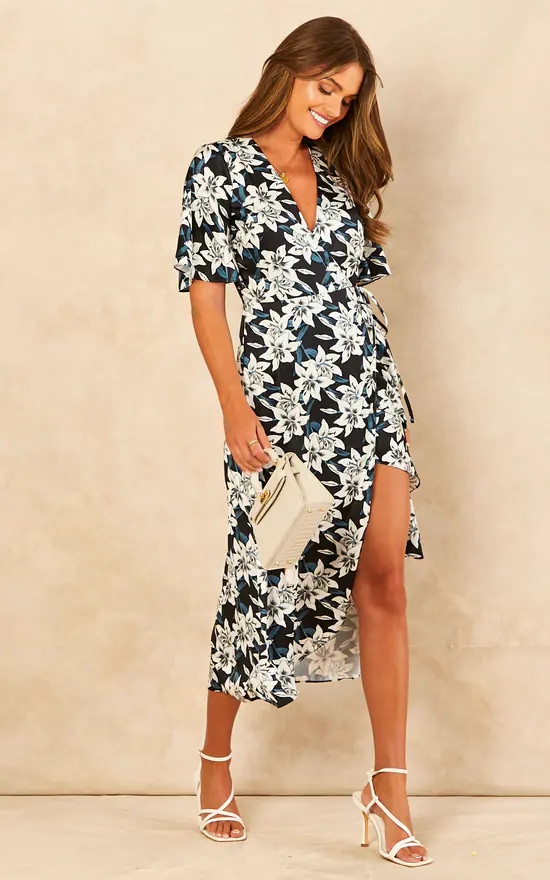 A little sass, a lot of class – this midi wrap dress injects statement style into your weekend situations.
