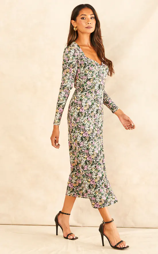 Stay elegant this season with the Corset Style Midi Dress. With a gorgeous floral print, mid length and a waistline designed to perfectly suit your figure thanks to its belt, this dress is your go to choice when going on a date night or a special event. Match with high heel shoes and a mini bag to complete your look.