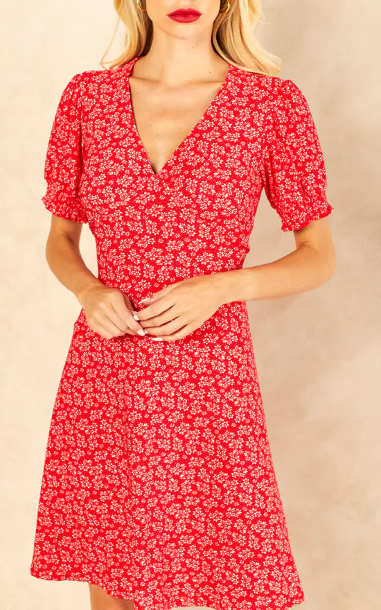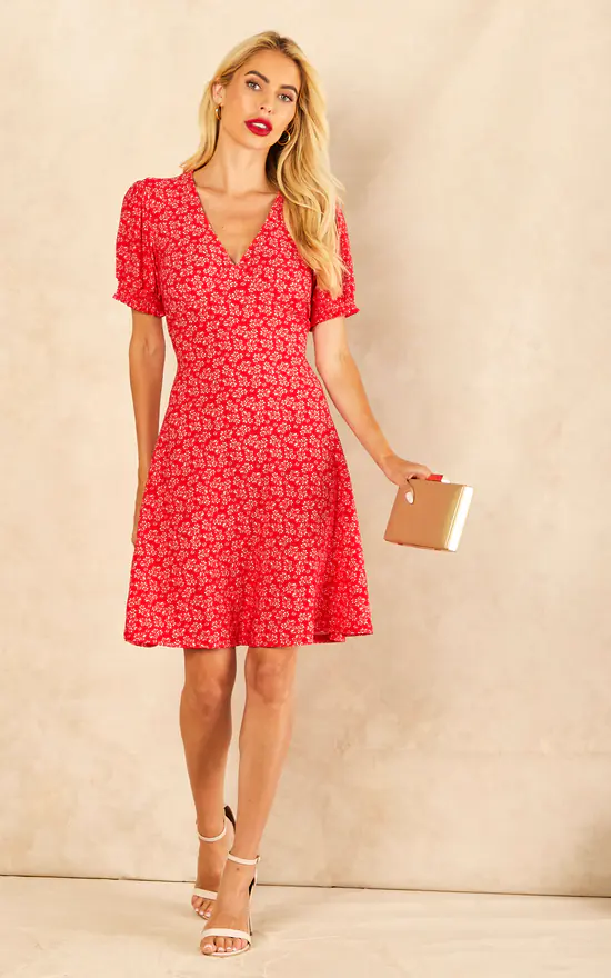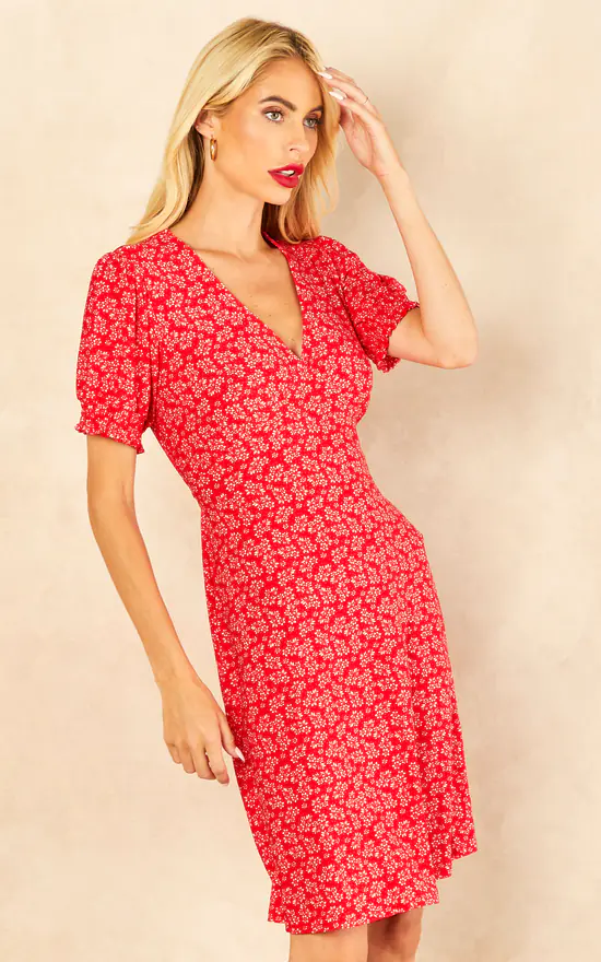 Exclusively by Blue Vanilla. Bring some summer florals into your wardrobe with this beautiful dress! This shirring cuff tea dress whit classy floral print will help to discover your feminine nature. Pair with sandals for a day time look.
