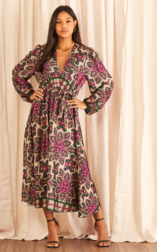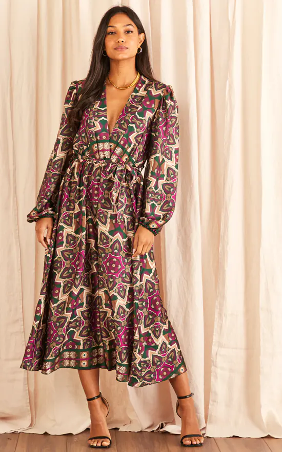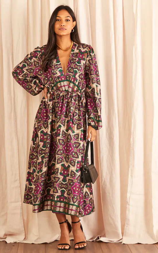 We’re absolutely enamoured with this dress: it’s bold, yet classy. Has a midi length to add elegancy, a wrap front and a tie waist to perfectly suit your figure. Could you ask for more? This v neck dress is great for dinner parties and wedding guests – all you have to is style with kitten heels and a clutch bag.