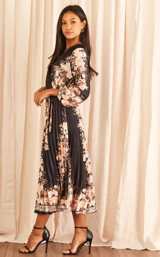 There’s an elegance in pleated dresses that cannot be matched. Particularly when combined with a floral print, wrap front, a flattering waist belt and a v neckline, you can rest assured any event you walk into, you will look and feel you’re best self. Minimal jewellery and cut out heels are all you need to perfectly style this dress.