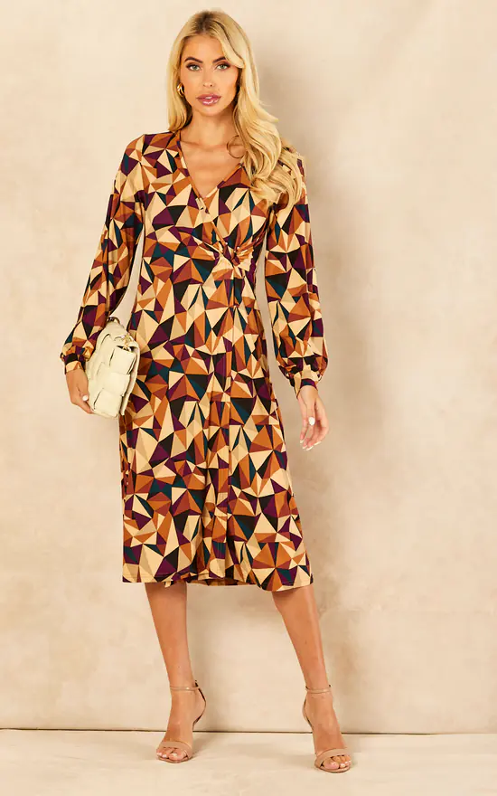 Special event? The V Neck Ring Detail Midi Dress it is! This elegant dress features a geometrical print, elasticated waist and a v neckline. Finish your look by matching this dress with high heel ankle boots.