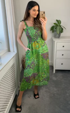 Budget ???? L’Atelier London Ditsy Cotton ???? Shirt Tiered Midi ???? Dress In Green ????