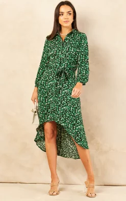 Cheap ???? D.Anna Green/White Heart Print Short Sleeve Wrap ???? Dress With Belt Fastening ????