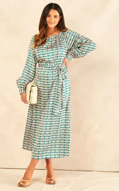 Cheap ???? Raishma Studio Addison Geo Abstract Long Sleeve A Line Midi ???? Dress In Green ????