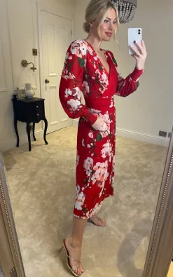 Deals ❤️ Hearts And Roses London 3/4 Sleeve Midi ???? Dress In Black Rose Floral Print ????