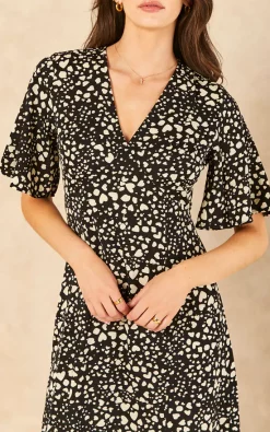 Discount ???? Bella And Blue Heart Print Angel Sleeve Midi ???? Dress In Black And White ????