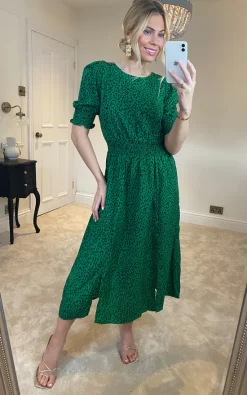 Flash Sale ???? Belle Love Italy Amber Ruffle Sleeve Shirred Midi ???? Dress Blue & Brown Aztec ????