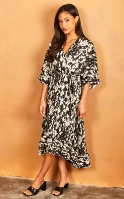 Flash Sale ✨ Blue Vanilla Diana Tiered Midi Smock ???? Dress In Khaki Leopard Print ????