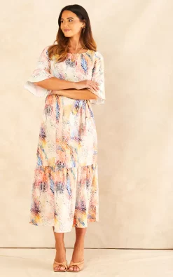 New ✨ Happy Mama Maternity Dipped Hem ???? Shirt ???? Dress In Abstract Print On White ????