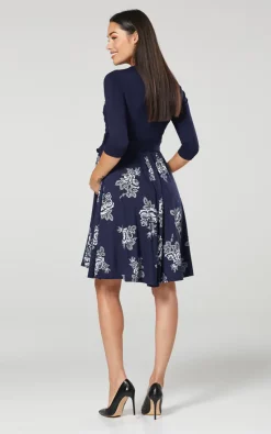 Wholesale ???? Happy Mama Maternity Wrap Nursing ???? Dress In Navy And White Flowers ????