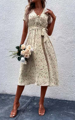 Wholesale ⌛ Sarta Leopard Print & Stars Midi Wrap ???? Dress Short Sleeve Waist Tie In Blue & Pink ⌛