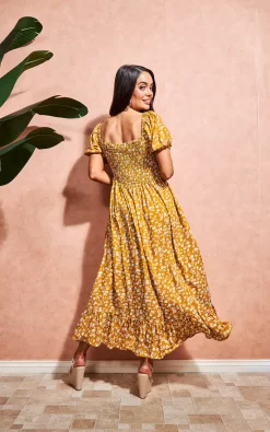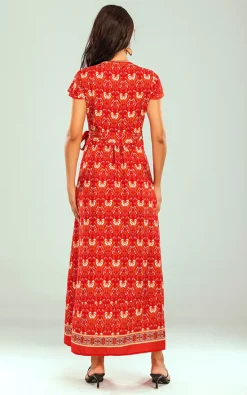 Best Sale ???? FS Collection Bohemian Style Wrap Maxi ???? Dress In Red & Gold Floral Print ????
