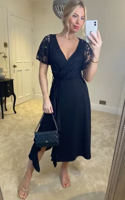 Wholesale ???? Girl In Mind Cecilia Asymmetric Ruffle Hem Midaxi ???? Dress Emerald Green Lace ✔️