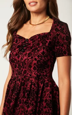 Coupon ???? Dark Pink Floral Red Maxi ???? Dress With Ruffle ???? Skirt And Lace Detailing ????