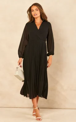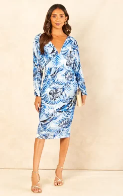 Cheapest ???? TENKI LONDON Ruffle Sleeve Floral Pattern Wrap Midi ???? Dress In Black White ????