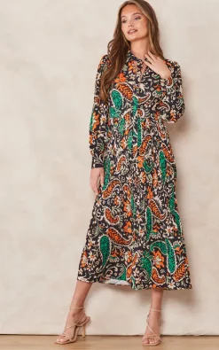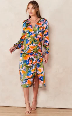 Deals ???? HOUSE OF MAGUIE Florence Floral Long Sleeve Tiered Wrap Shirred Midi ???? Dress ????