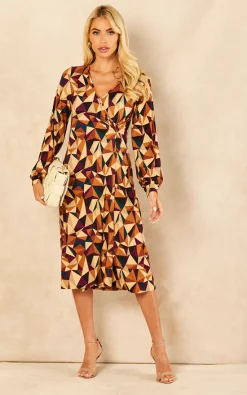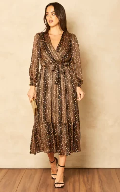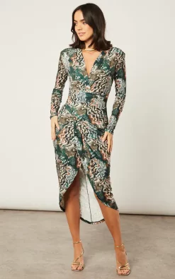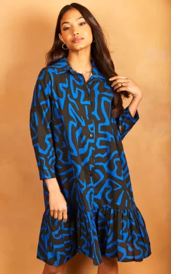 Best Pirce ???? Bella And Blue Long Sleeve V Neck Leaf Print ???? Dress In Black And White ????