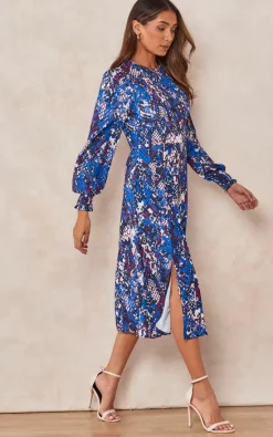 Best reviews of ???? Jenerique Long Sleeve Midi ???? Dress With 2 Slits In Sax Snake Print ????