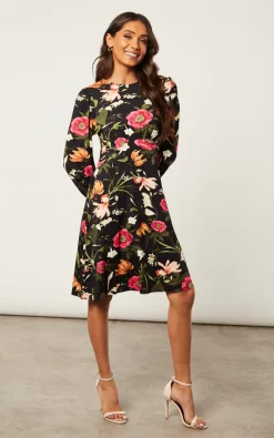 Buy ???? Kitten Beachwear Noelle Long Sleeve Wrap ???? Dress In Navy And Purple Floral Print ????