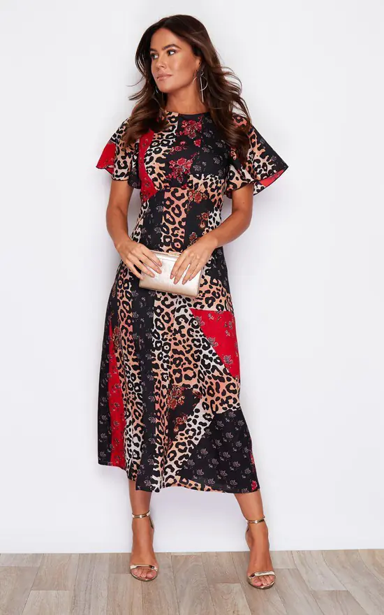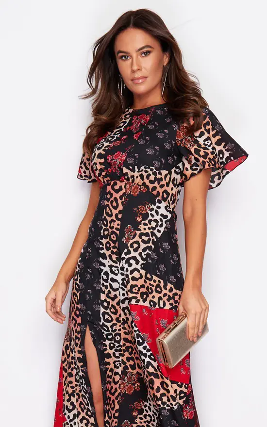 Be talk of the town in this stunning midaxi dress, in a leopard multi print. Featuring a side split and bell sleeve detailing. Pair with sandals and a handbag for lunch with the family or dress up for a party.