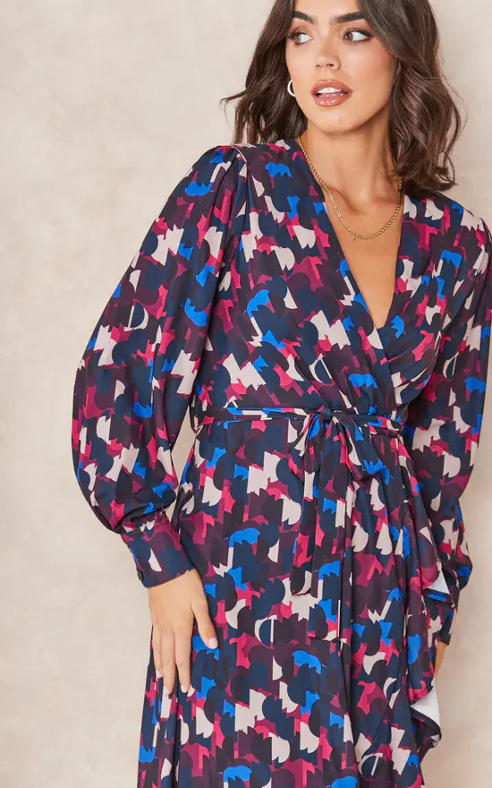 -Party, Going out, Winter, Summer, Wedding guest dress, Bridesmaid dress, long sleeve, midi, wrap, floral print, abstract, animal print, geometrical print.