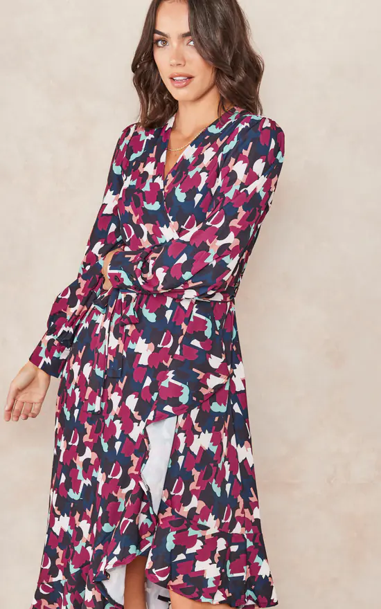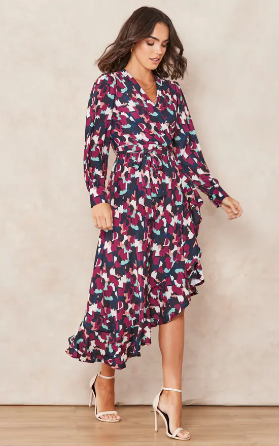 -Party, Going out, Winter, Summer, Wedding guest dress, Bridesmaid dress, long sleeve, midi, wrap, floral print, abstract, animal print, geometrical print.