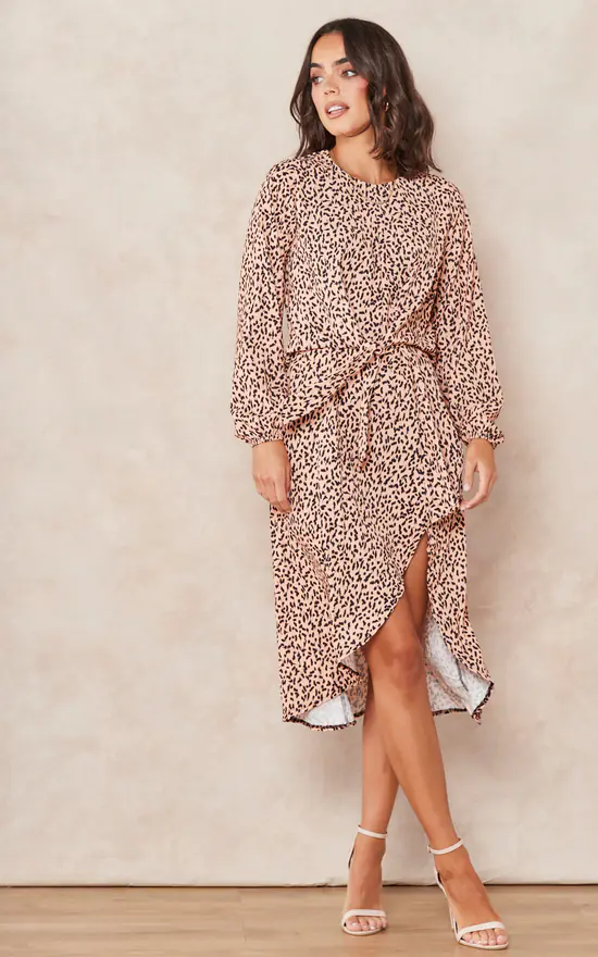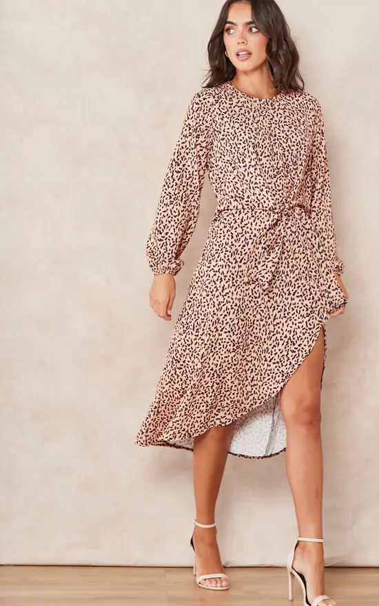 -Party, Going out, Winter, Summer, Wedding guest dress, Bridesmaid dress, long sleeve, midi, wrap, floral print, abstract, animal print, polka dot.