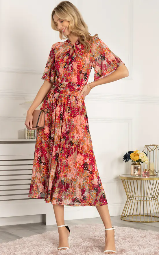 Keep your new season options feeling fresh and distinct from the crowd with this Tina Mesh Dress by Jolie Moi. Doused in an all over floral print, this utterly feminine silhouette is achieved through a turtleneck with a key hole detailing and flared elbow length sleeves add a touch of retro detail. It is made from a fluid and mesh fabric and fully lined. Look to team with heeled boots to complete the look.