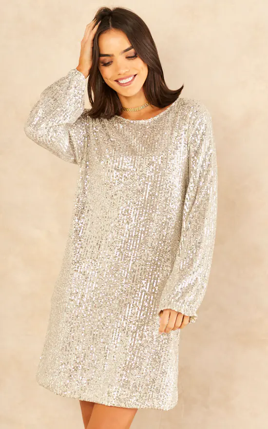 Stunning new party season arrivals. Our fully sequin embellished midi dress features long sleeves and is fully lined with jersey stretch. Layer with our faux fur gilets and boots. A luxury, top quality addition to your wardrobe! Perfect for parties and nights out.