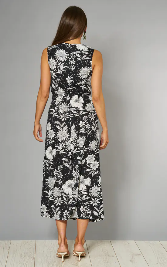 Tone down your new look with this monochrome midi dress. Designed with a sleek floral print, it’s been updated with spots, a crossover design and a slinky tie running around the waist. The soft fabric and sleeveless style make it a comfortable choice, with a zip on the back bringing it to the perfect close.