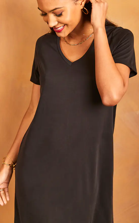 The perfect summer basic. Comfortable and casual, this black t-shirt style dress is a wardrobe staple. Wear yours with trainers for a casual look or wedges.