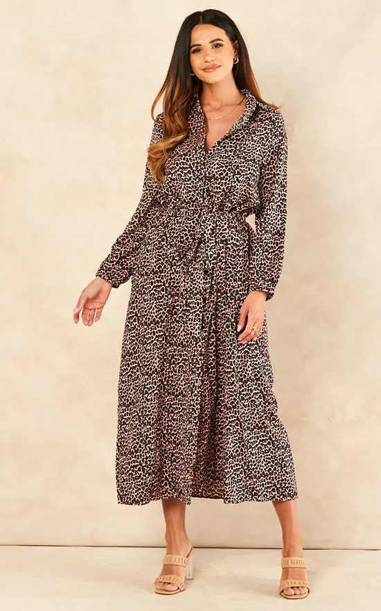 Feel fabulous this summer in this pink and black leopard print shirt dress.