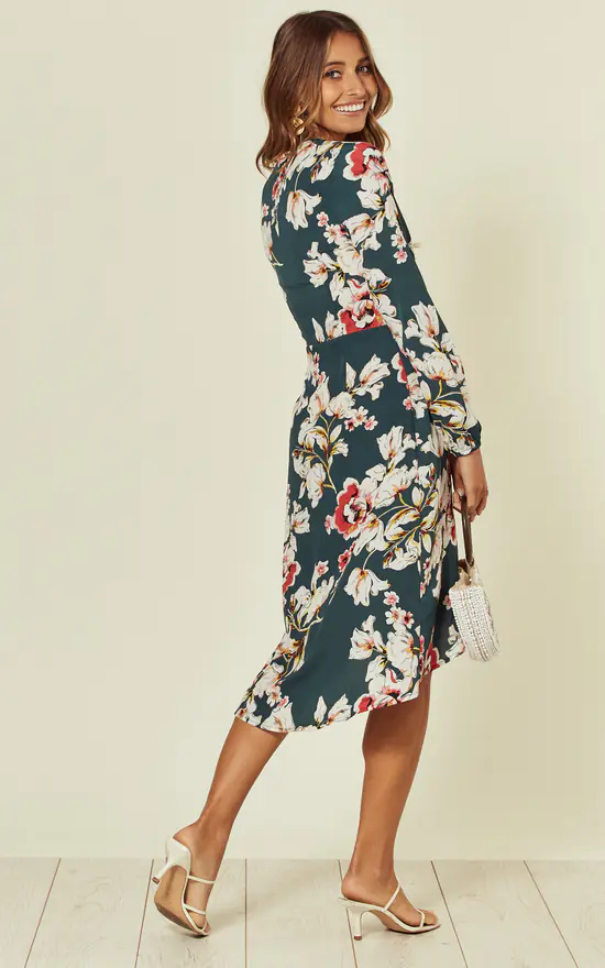 Featuring our gorgeous forest green floral print, paired with a twisted tie front and v-neck. Perfect for the office or after work drinks.