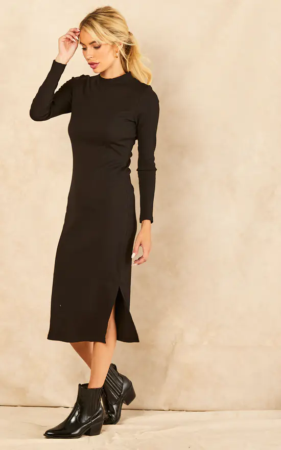 Fuss-free and chic, this ribbed midi dress is made for effortless styling. Wear with boots and a leather jacket.